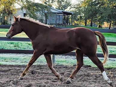 LUX is a Oldenburg x TB cross. She will be 2 yr old in the spring. Should mature to 16.2HH. Nice mover and very kind. She stands tied and bathes.